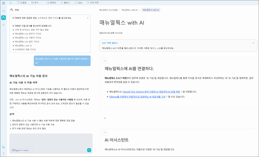 국내에서 매뉴얼 제작 도구 매뉴얼웍스를 만드는 쓰리래빗츠에서 AI 기능을 도입했다는 소식입니다.