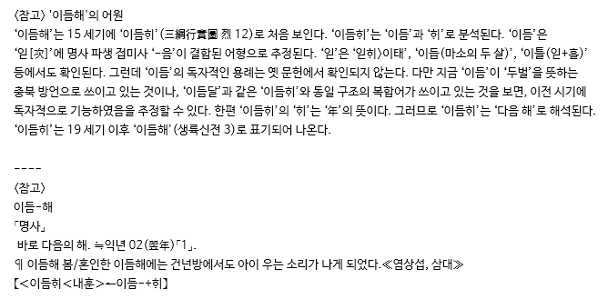 2016년 답변이 그나마 잘 설명을 해주고 있습니다. "이듬해"에 대한 설명인데 "이틀" 이야기가 같이 나옵니다.