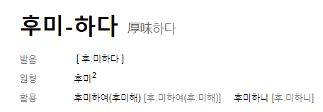 다른 한자는 "厚味"입니다. "고량후미 膏粱厚味"을 줄여서 표현하는 것이라고 하네요. 단어에서 느껴지는(?) 것처럼 기름진 음식. 진한 맛을 표현한다고 합니다. 독특하게 이 표현은 동사로도 사용합니다. 문헌 상에서는 "後味"보다 오히려 "후미하다"는 표현을 더 많이 쓰는 듯 합니다. 뜻을 모르고 들으면 순우리말로 오해할 수도 있습니다.