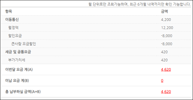 0원과 비교하니 4620원이 무척 비싼 요금같군요 ㅠㅠ