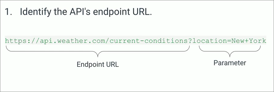 When you want to connect to an API, the first thing you need to do is identify the API's endpoint URL. An API endpoint is a specific URL that represents a certain functionality or data set provided by the API. For example, an endpoint could represent a user's data, or a specific function like searching for a particular product on an e-commerce website.