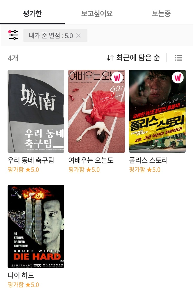 왓챠피디아는 5점 기준으로 평가를 하는데, 5점을 준 영화는 딱 4편이네요.