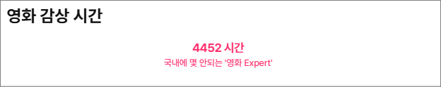 대략 4400시간이 넘어가면 "국내에 몇 안 되는 '영화 Expert'"라는 이름을 받을 수 있습니다.