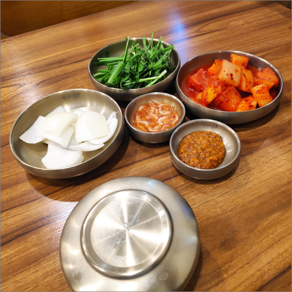 찬은 어디나 기본입니다. 쌈장처럼 보이는 것이 시중에 달달한 쌈장은 아니고, 뭔가 진하고 거친 질감을 가지고 있습니다.
