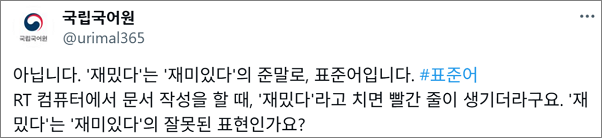 재밌는, 재밌다는 표준어입니다. 재미있는, 재미있다의 준말이라고 합니다.