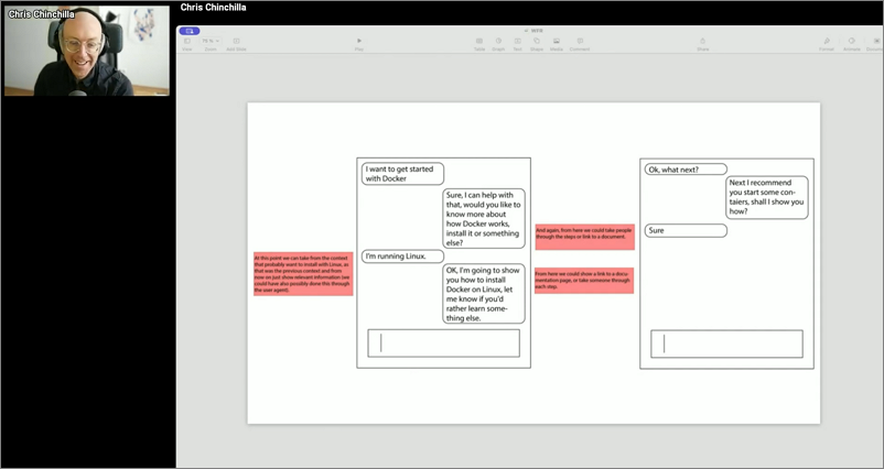 2017년 즈음 크리스는 챗봇에 대한 아이디어를 떠올렸다고 합니다. 챗봇이 문서를 인식하고 문서의 내용에 기반해 사용자와 채팅을 나눌 수 있게 하는 것이죠. 그 당시 챗봇이 있었긴 했지만 대부분 특정 룰 기반이었고 대부분 만족스럽지 못했습니다. 아이디어는 좋았지만 실질적으로 이를 구현할 수 있는 기술은 없었죠. 그리고 시간이 지나 이런 아이디어가 현실이 되었습니다. 대단한 기술 없이도 그냥 웹브라우저에서 페이지를 띄우고 사용자는 그 내용에 대해 이야기할 수 있고 필요하다면 문서 전체를 학습시킨 후 문서 기반으로 대화를 나눌 수도 있습니다.