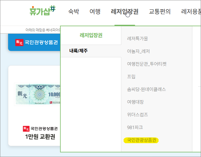 PC 기준으로 휴가샵에서 아래와 같이 확인하실 수 있습니다.