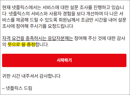 혹시나 해서 찾아보니 넷플릭스 설문 관련 스캠 메일이 돌고 있다는 이야기는 있습니다.